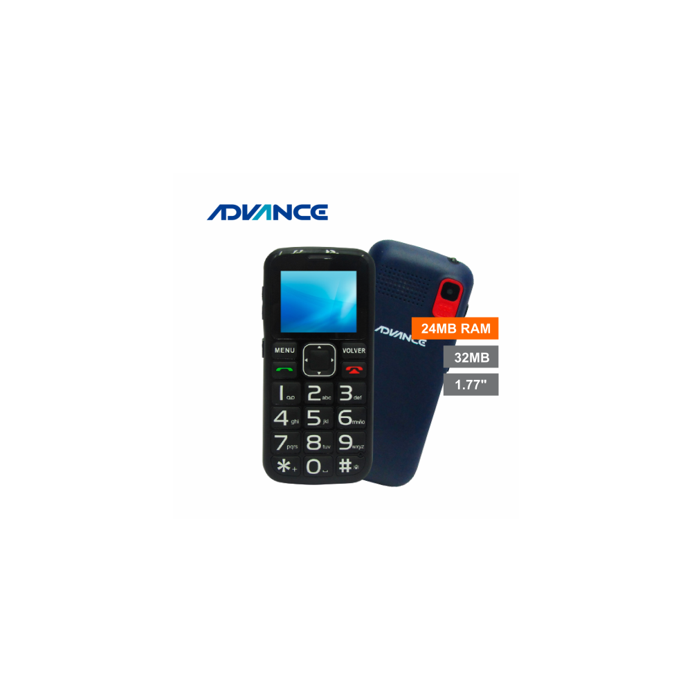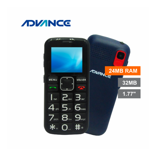 Teléfono Celular Advance Hollogram HL2246, 1.77" 128x160, Radio FM, Dual SIM, Desbloqueado Bandas: 2G (850/900/1800/1900MHz), conectividad Bluetooth, función SOS (para llamadas d emergencia), procesador MTK6261M, memoria RAM 24 MB, memoria ROM 32 MB, ranura micro-SD (soporta hasta 32GB),cámara posterior VGA con Flash Led, conector micro-USB, conector 3.5mm, teclado numérico, linterna, batería 1000 mAh.